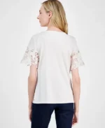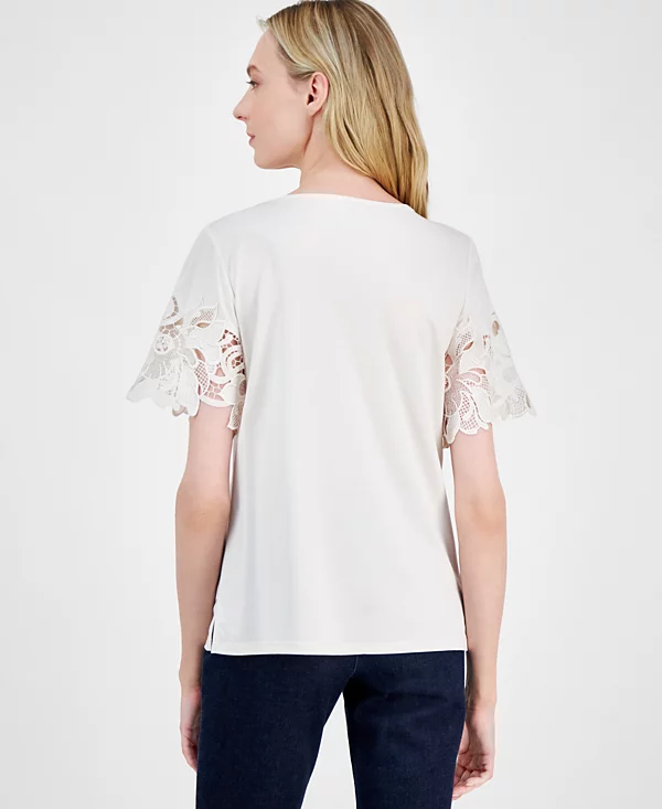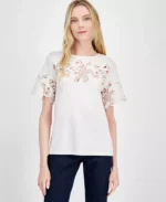 - Short sleeves with open floral design