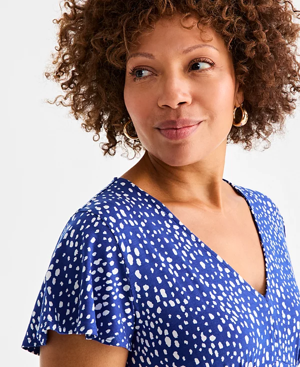 Women’s Printed Flutter-Sleeve Knit Midi Dress, Exclusively at Macy’s